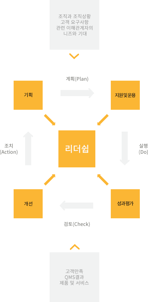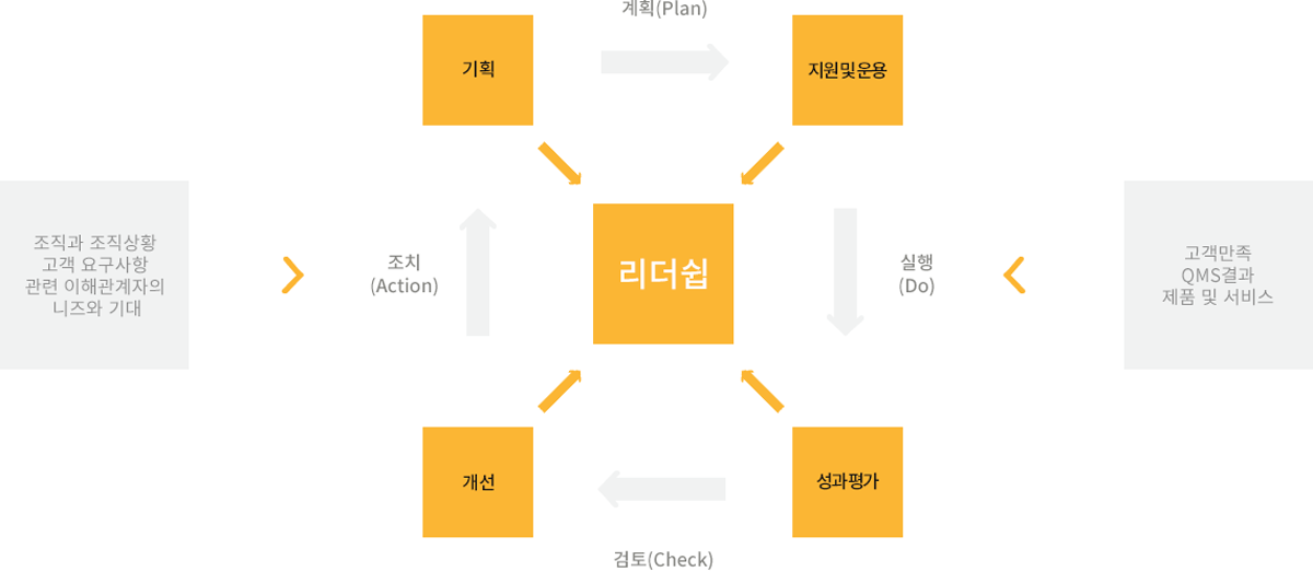 | Plan | 품질경영 시스템에 필요한 프로세스 파악 프로세스 순서 및 상호작용의 파악 프로세스 운영에 필요한 기준 및 방법 결정 |